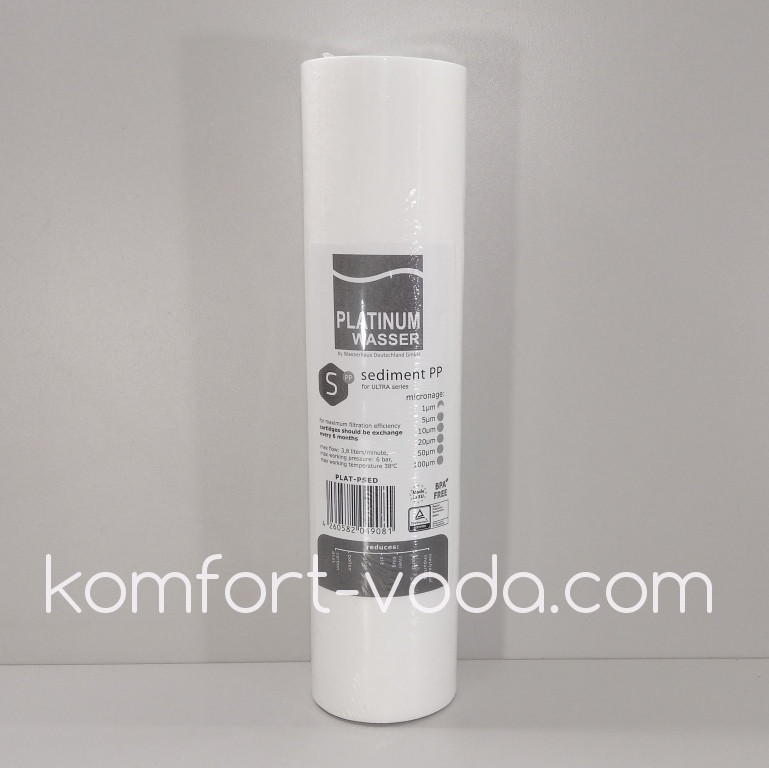 Картридж Platinum Wasser PLAT-PSED 10", картридж з високоякісного пористого поліпропілену для холодної води.