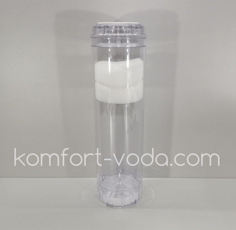 Прозорий корпус картриджа Aquafilter FCEB10 з внутрішніми вставками, призначений для наповнення будь-яким завантажувальним матеріалом, за бажанням і потребою споживача. Картридж підходить для корпусів фільтрів 10".